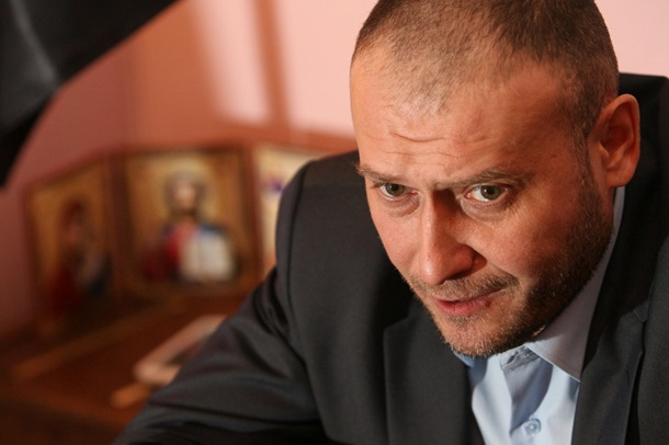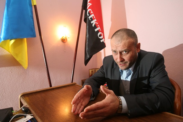 Лидер Правого сектора Дмитрий Ярош рассказал Корреспонденту, будет ли он воевать с Россией, есть ли бандеровцы в Крыму и кого спас Саша Белый с автоматом. Темнокожий швейцар в голубой ливрее, широко улыбаясь, открывает дверь. Рядом с ним стоит щуплый паренек с черно‑красной повязкой — проверяет гостей. Швейцар здоровается с входящими националистами — правда, те не особо приветливы. После пожара в Доме профсоюзов Правому сектору пришлось искать новое место для своей штаб‑квартиры. Разместились неподалеку — на двух этажах отеля Днепр, что на Европейской площади. В лифте на табурете сидит охранник из Правого сектора, читает Кобзарь. На нас он даже не обратил внимания. На шестом этаже — штаб. В коридоре много людей, все в военном, у некоторых автоматы и пистолеты. Лиц никто не прячет, но радушия в глазах нет. Проверка документов, запись в журнал входящих. - Оружие есть? - спрашивает страж. - Откуда?! Мы же журналисты, — пытается отшутиться Корреспондент. Но избежать проверки металлодетектором и досмотра сумок не получается. По коридору везде установлены камеры наблюдения, они есть даже на центральном входе. Проложены коммуникационные кабели — видно, что все это принадлежит новым постояльцам. Дальше работает пункт наблюдения за мониторами. Сразу за ним — кабинет лидера Правого сектора Дмитрия Яроша. У дверей два охранника. Хозяин кабинета — полная противоположность окружению. Он сменил военный “однострой” и берцы на костюм и туфли, но к галстуку, похоже, еще не привык.